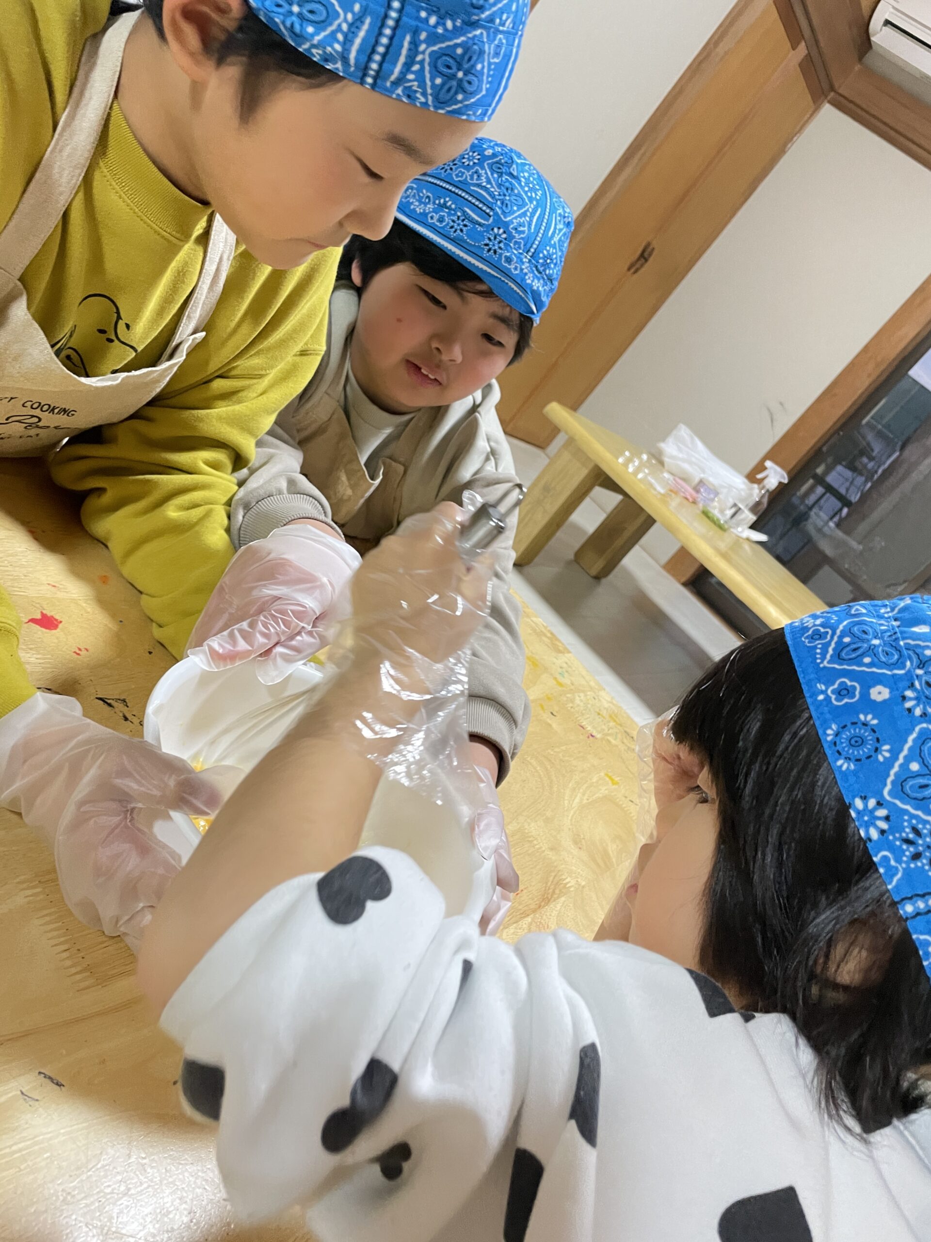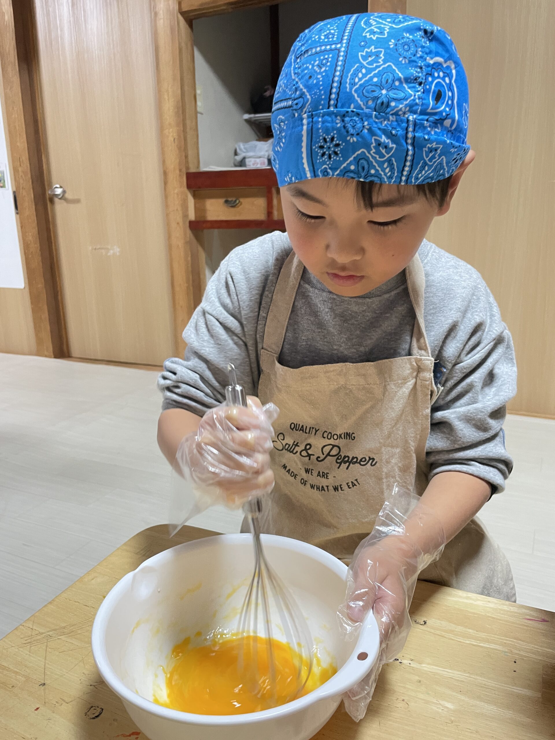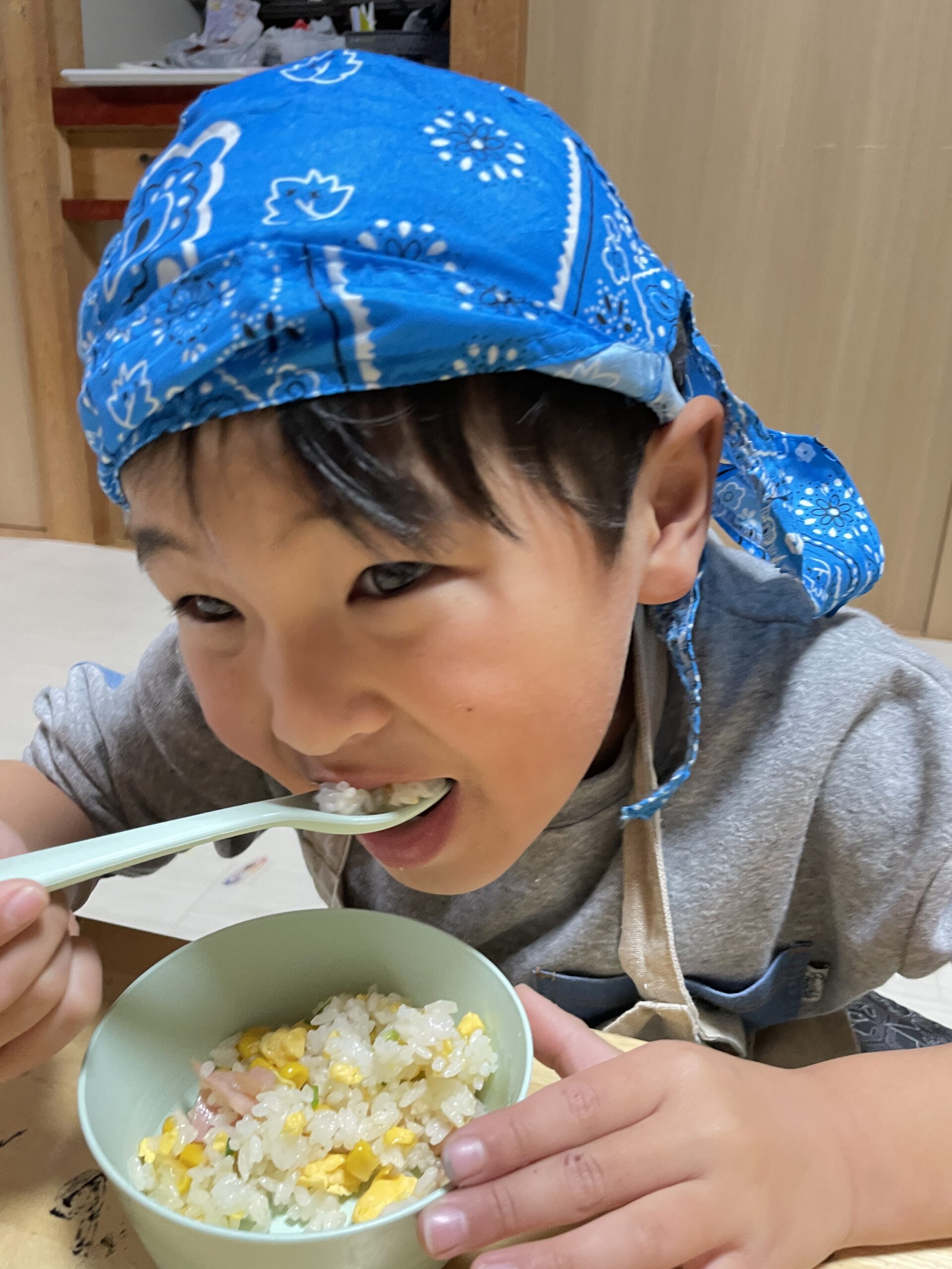 卵を割る係・混ぜる係・包丁でハムを切る係など、工程ごとに係を決めて調理しました✨