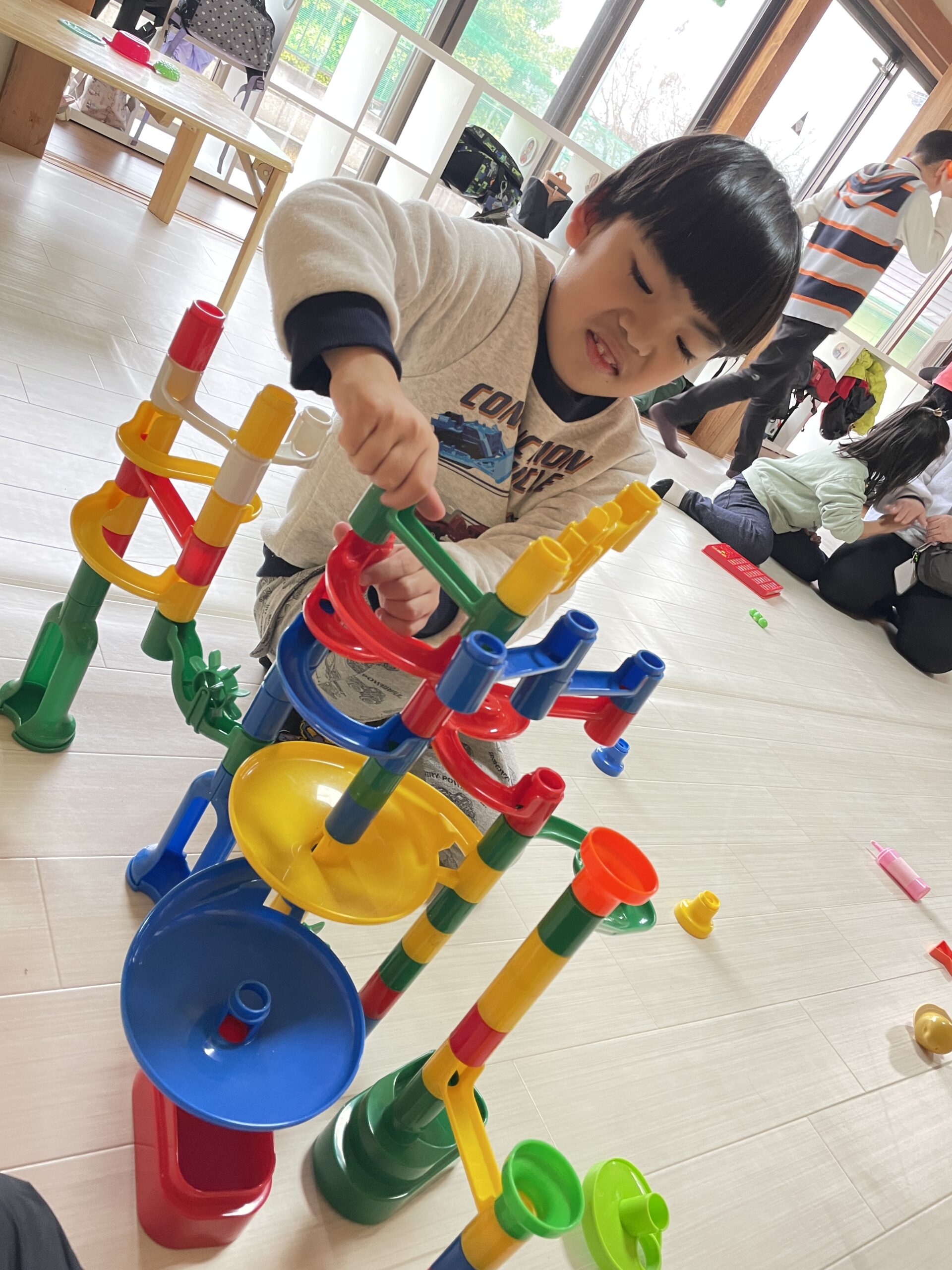 お庭や公園では元気いっぱい身体を動かし、室内とのメリハリをつけながらそれぞれが好きな遊びをできる時間を設けています(^O^)✨
