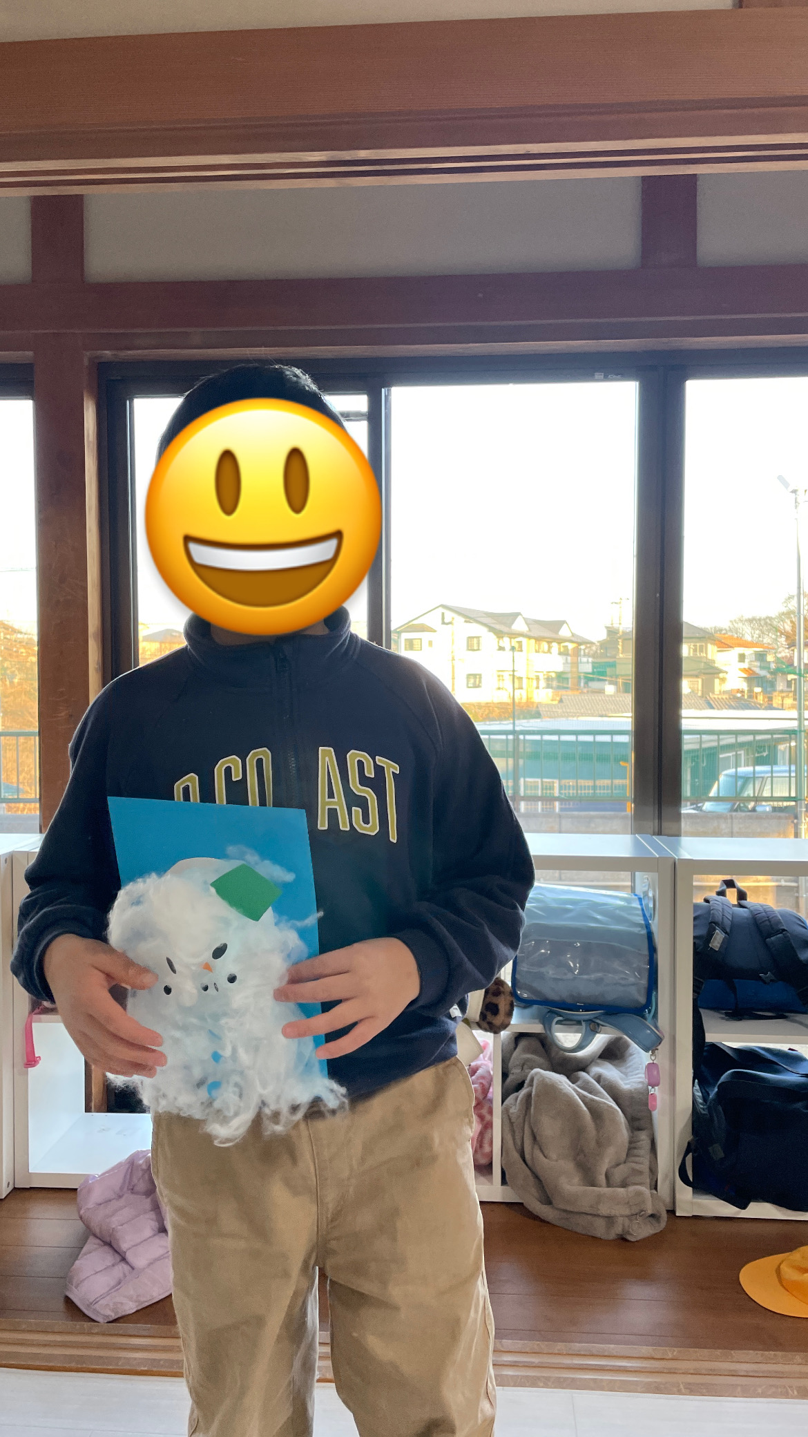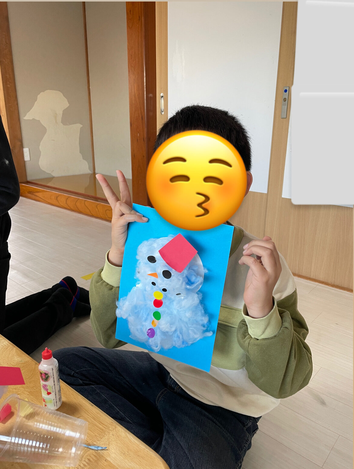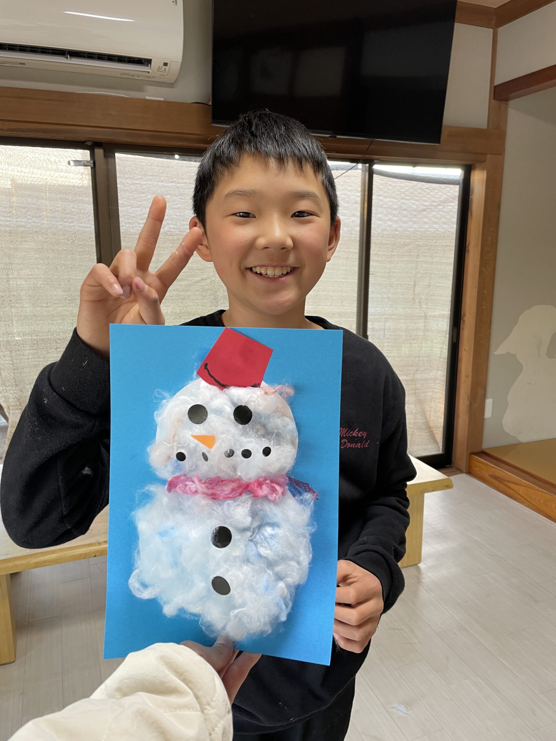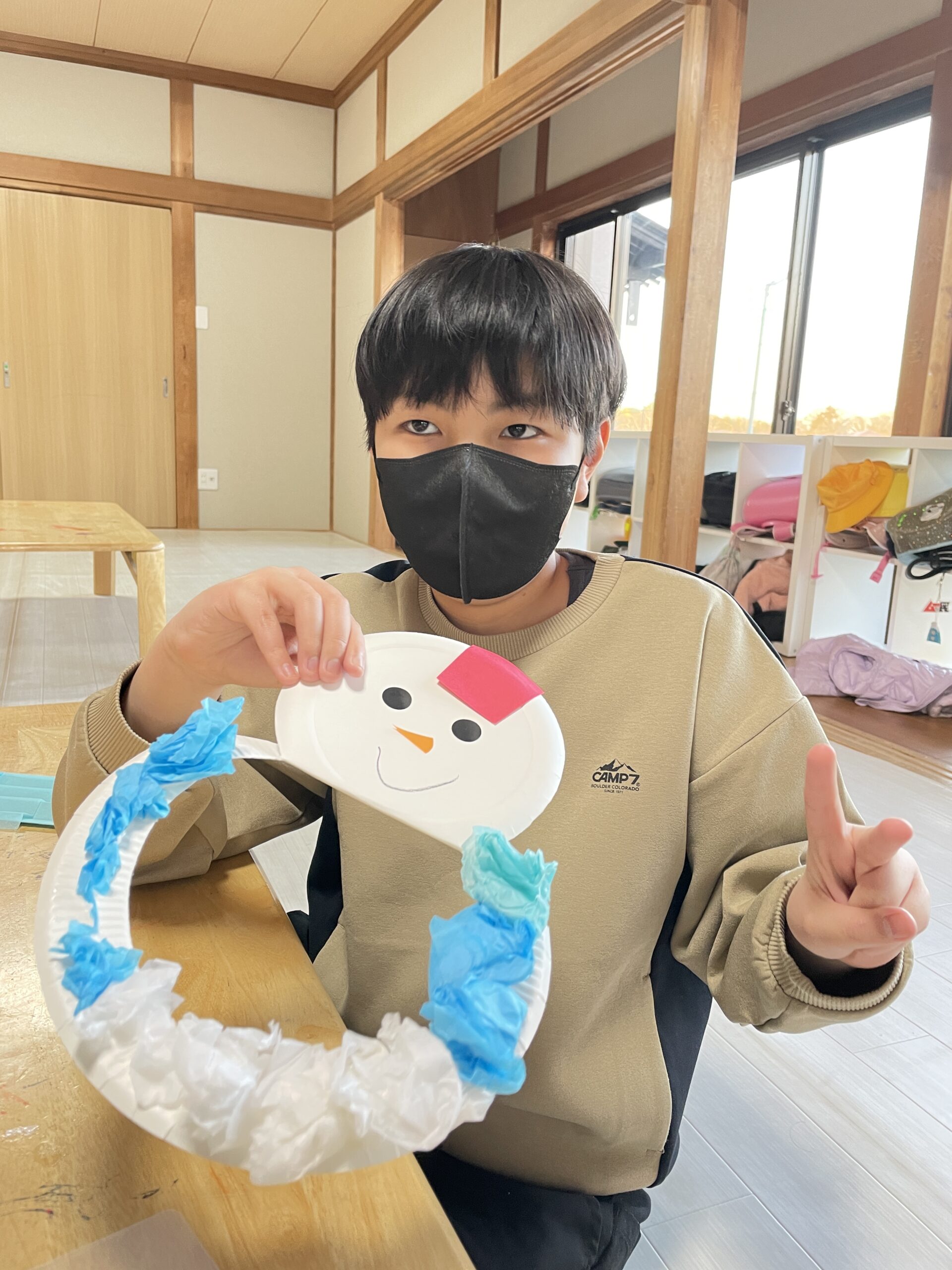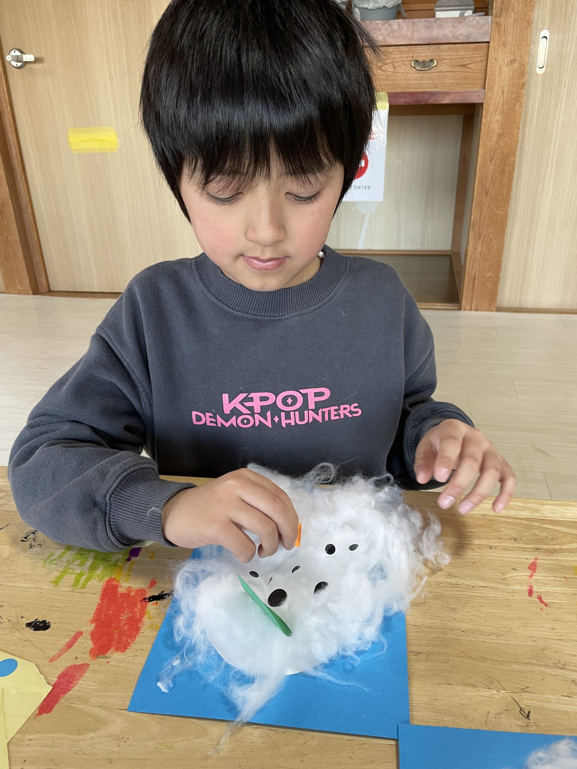 お花紙を使って雪だるま作りもしました!くしゃくしゃとお花紙を丸め、ボンドを使って上手に貼り付けもできました⛄クレヨンで顔も書き可愛らしい雪だるまが完成しました✨