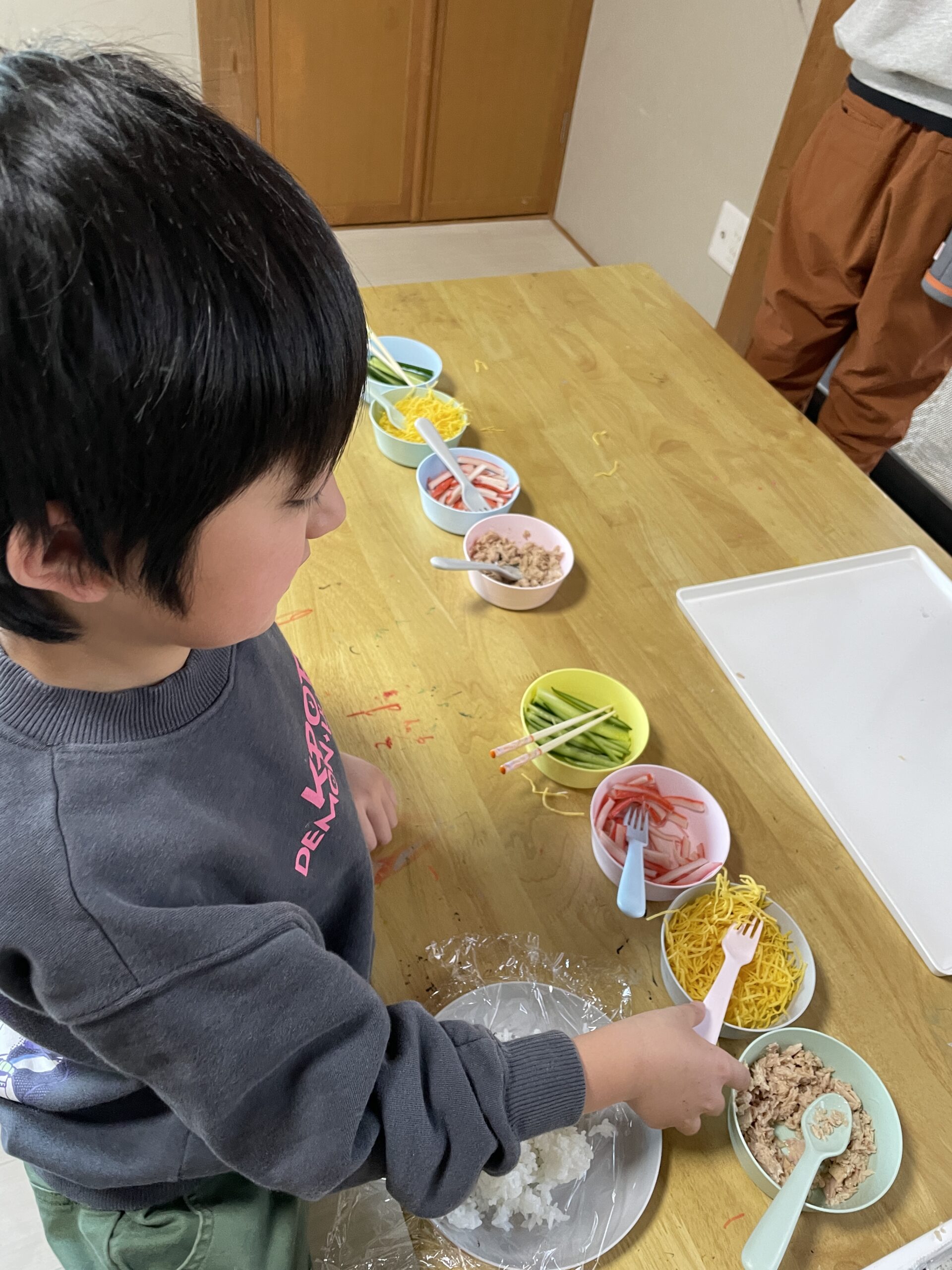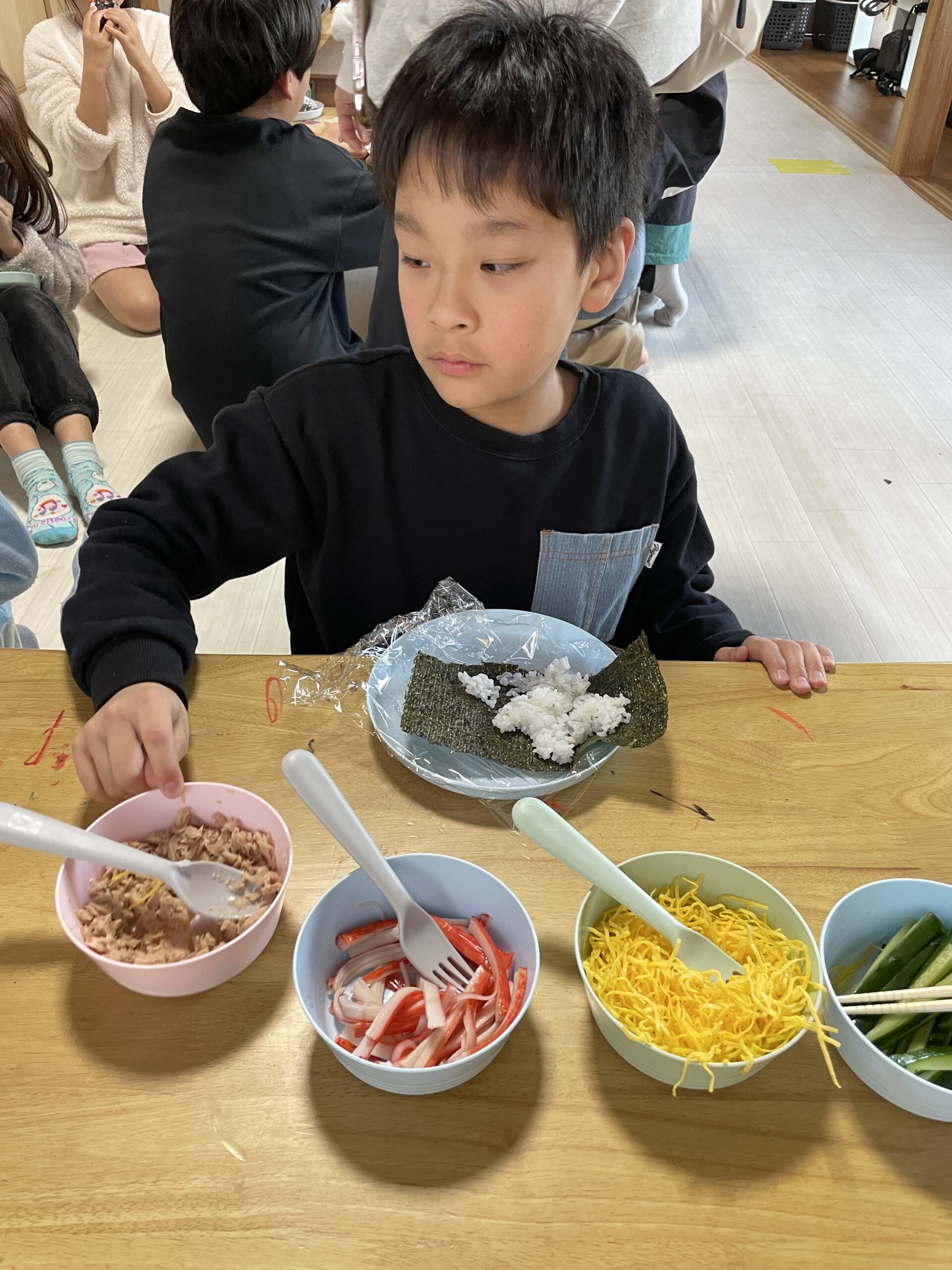 2/3に、ジャンプでも節分行事を楽しみました✨節分クイズをしたことで、節分という行事がどのようなものなのかや節分にまつわることを知ることができました♪その後は、皆で恵方巻作りをしました🥢好きな具材を沢山乗せて作りました!どの子も美味しそうな恵方巻が完成しましたよ~🤤